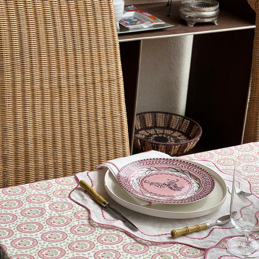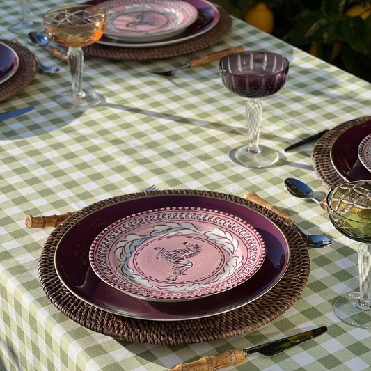 Toalha de Mesa Linho com Folho Vichy Lavanda